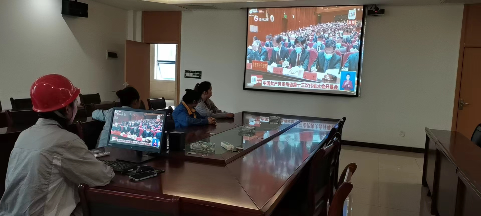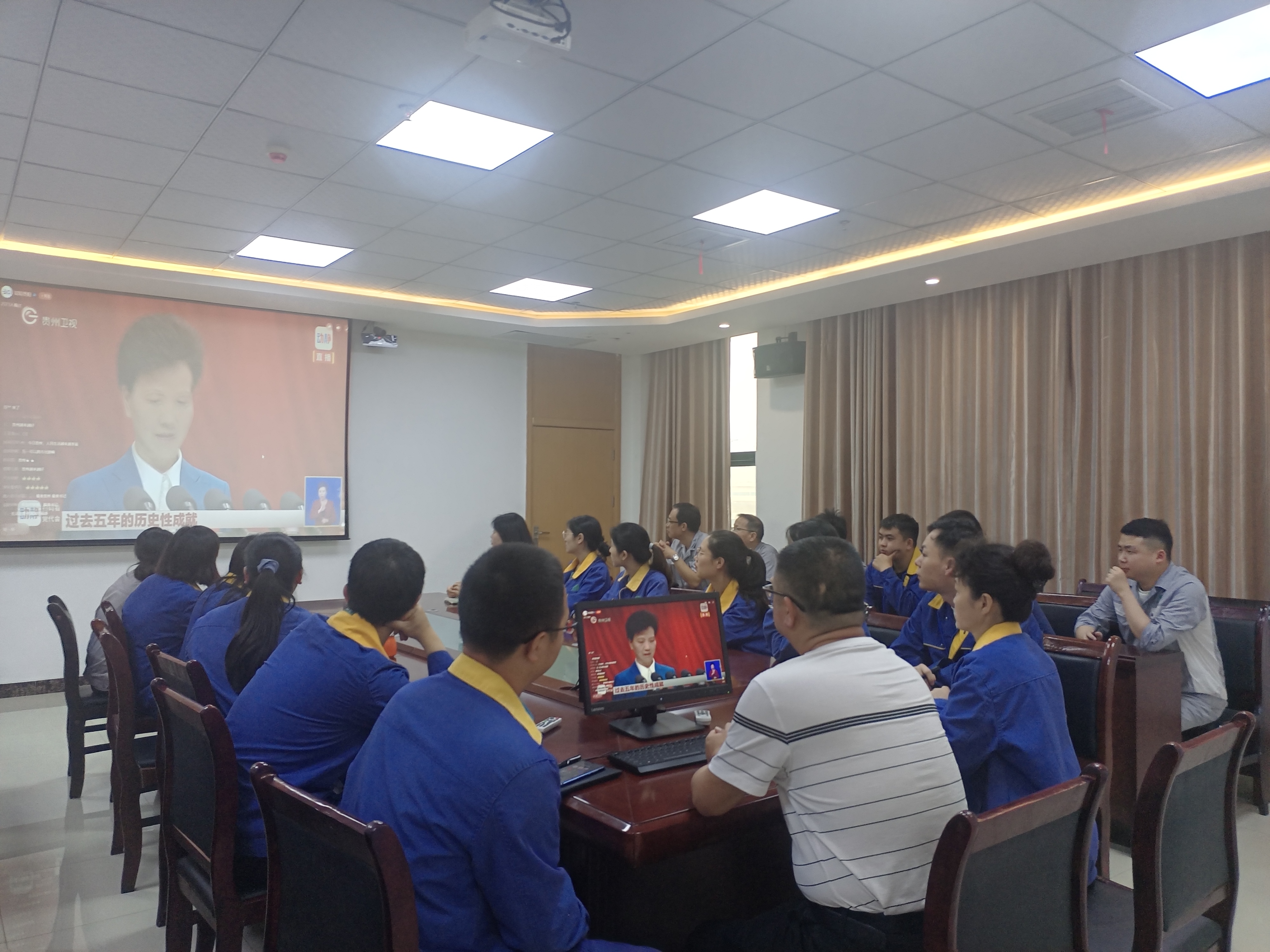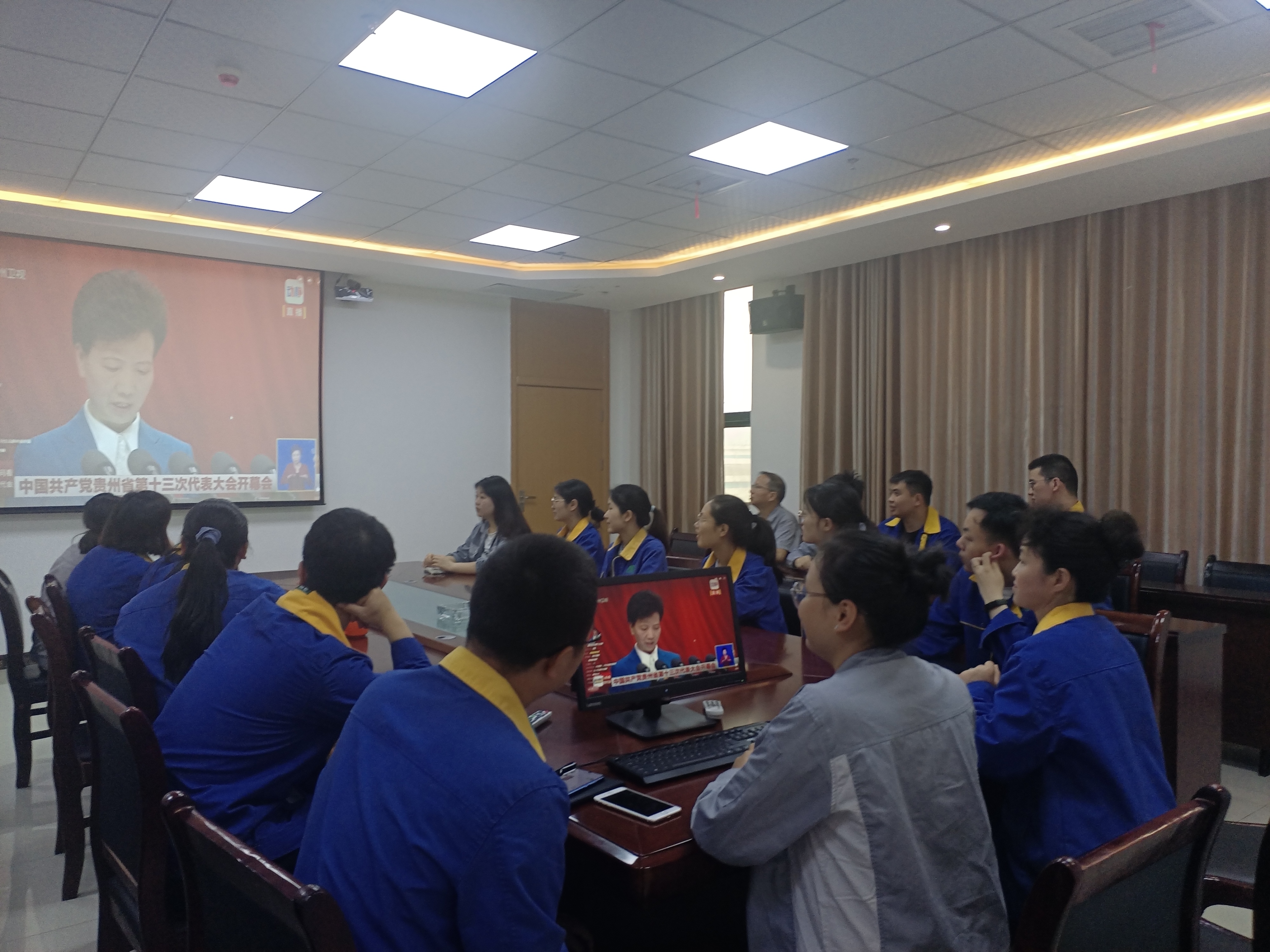 4月25日,上午9時,中國共產黨貴州省第十三次代表大會在貴陽開幕,能礦錳業黨工團、女工委組織公司廣大干部職工集中觀看開幕式直播。