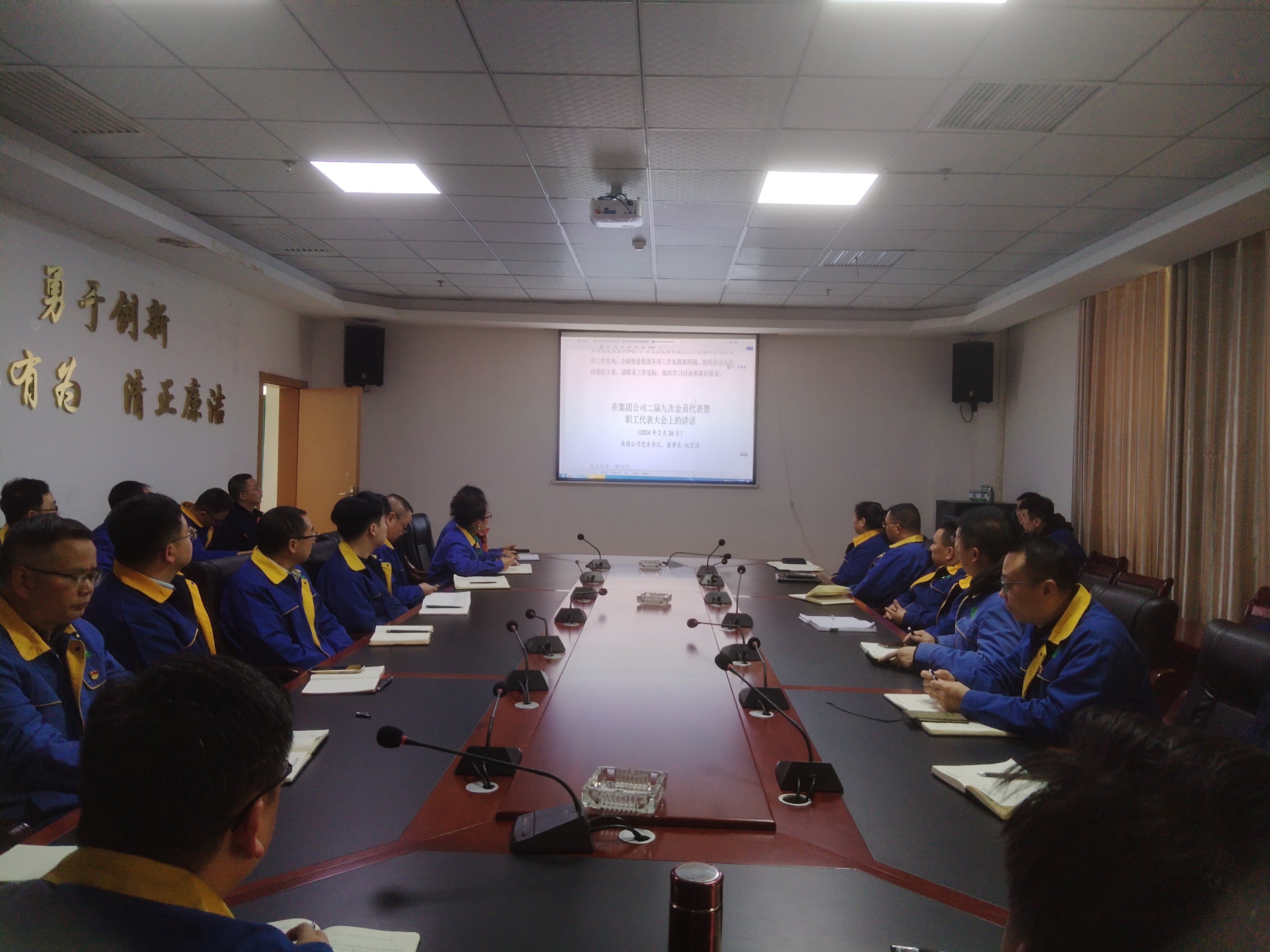 本網訊 2月28日早調會后,能礦錳業迅速行動,由公司黨委委員、副總經理、工會主席周圍傳達學習集團二屆九次會員代表大會暨職工代表大會精神。會議由能礦錳業黨委書記、董事長譚曉軍主持,公司黨委班子成員、部分中層干部30余人參會。