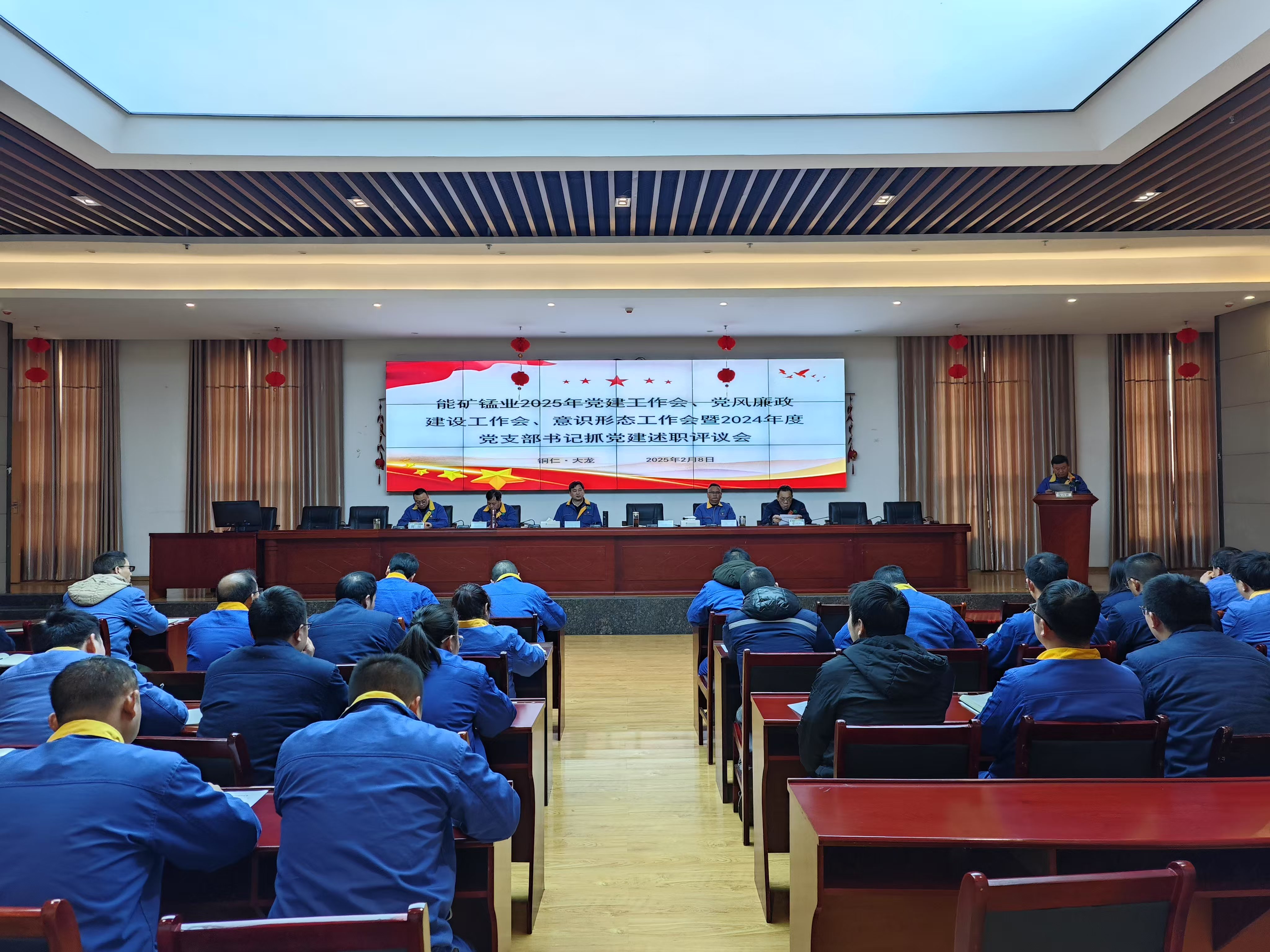 本網訊 2月8日,能礦錳業召開黨建工作會、黨風廉政建設工作會、意識形態工作會暨2024年度黨支部書記抓黨建述職評議會,公司黨委書記、董事長譚曉軍出席會議并講話,會議由黨委委員、副總經理周圍主持,公司黨委班子成員、黨支部書記、中層副職以上干部及全體黨員參加。