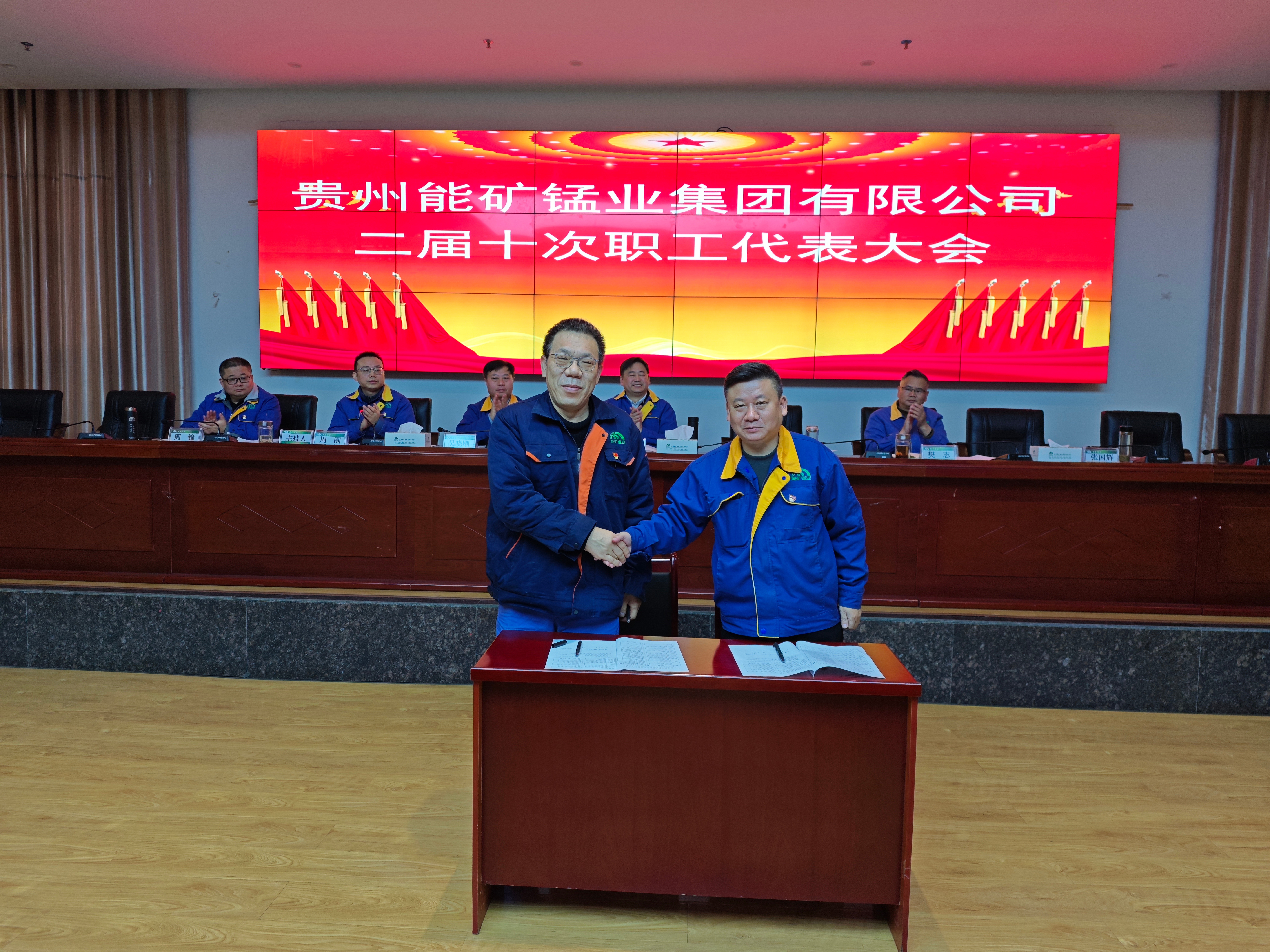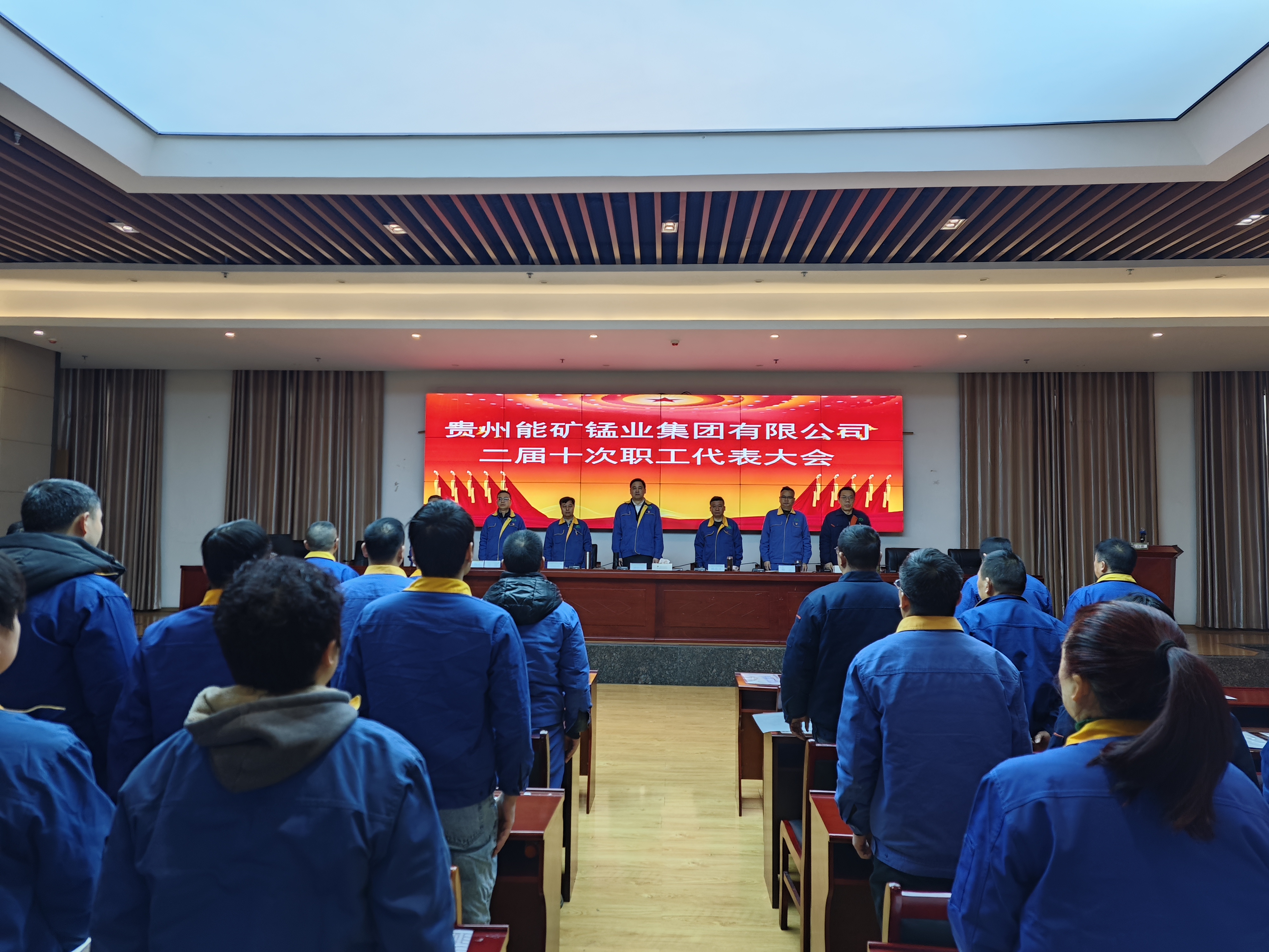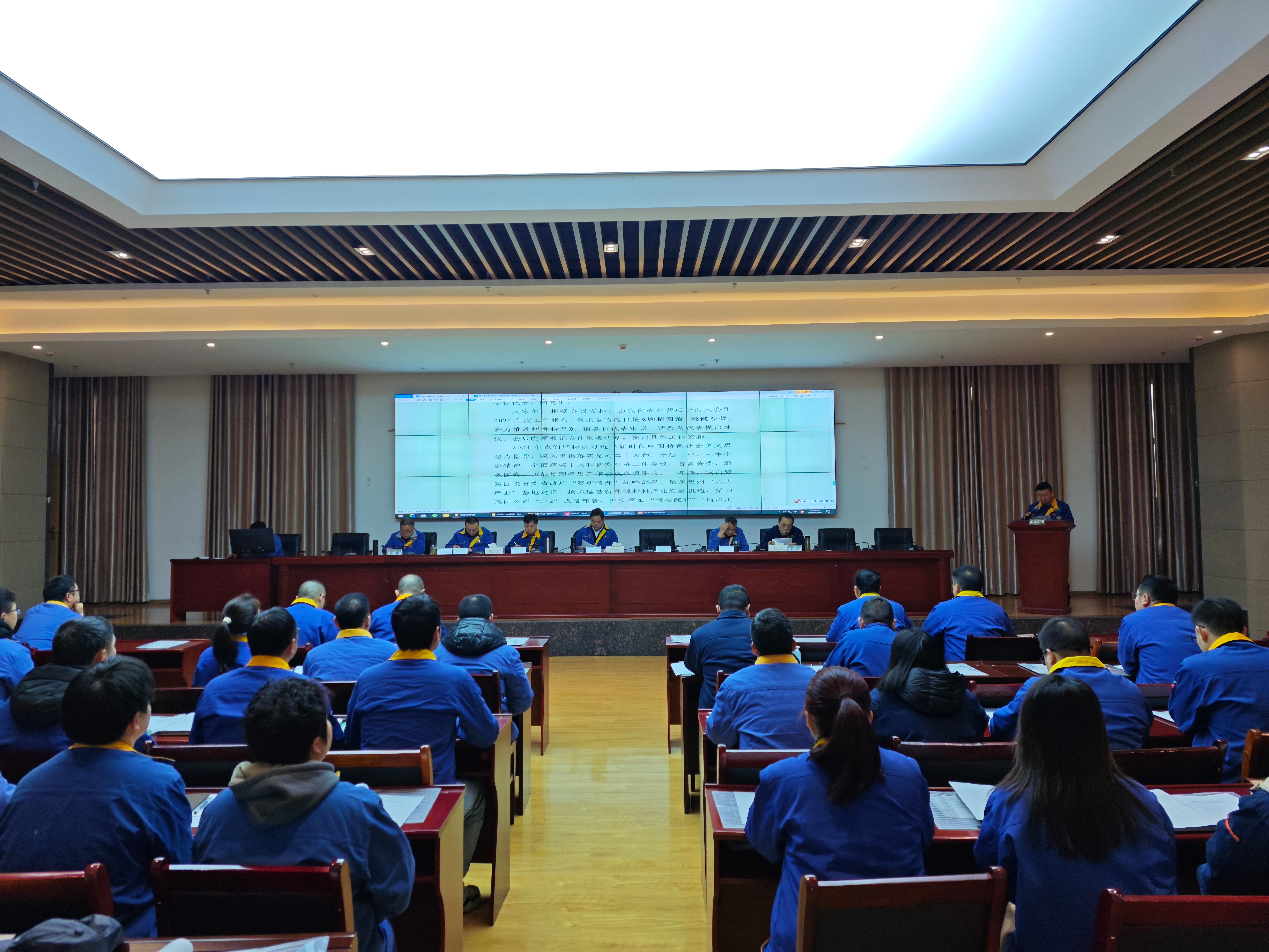 8時40分,能礦錳業二屆十次職工代表大會在雄壯的國歌聲中拉開帷幕。公司黨委副書記、總經理楊曲波作了2024年度總經理工作報告,財務總監吳曉剛作了2024年度財務預決算工作報告,副總經理、工會主席周圍作了2024年度工會工作報告,副總經理周鋒同志作了2024年度安全環保工作報告。