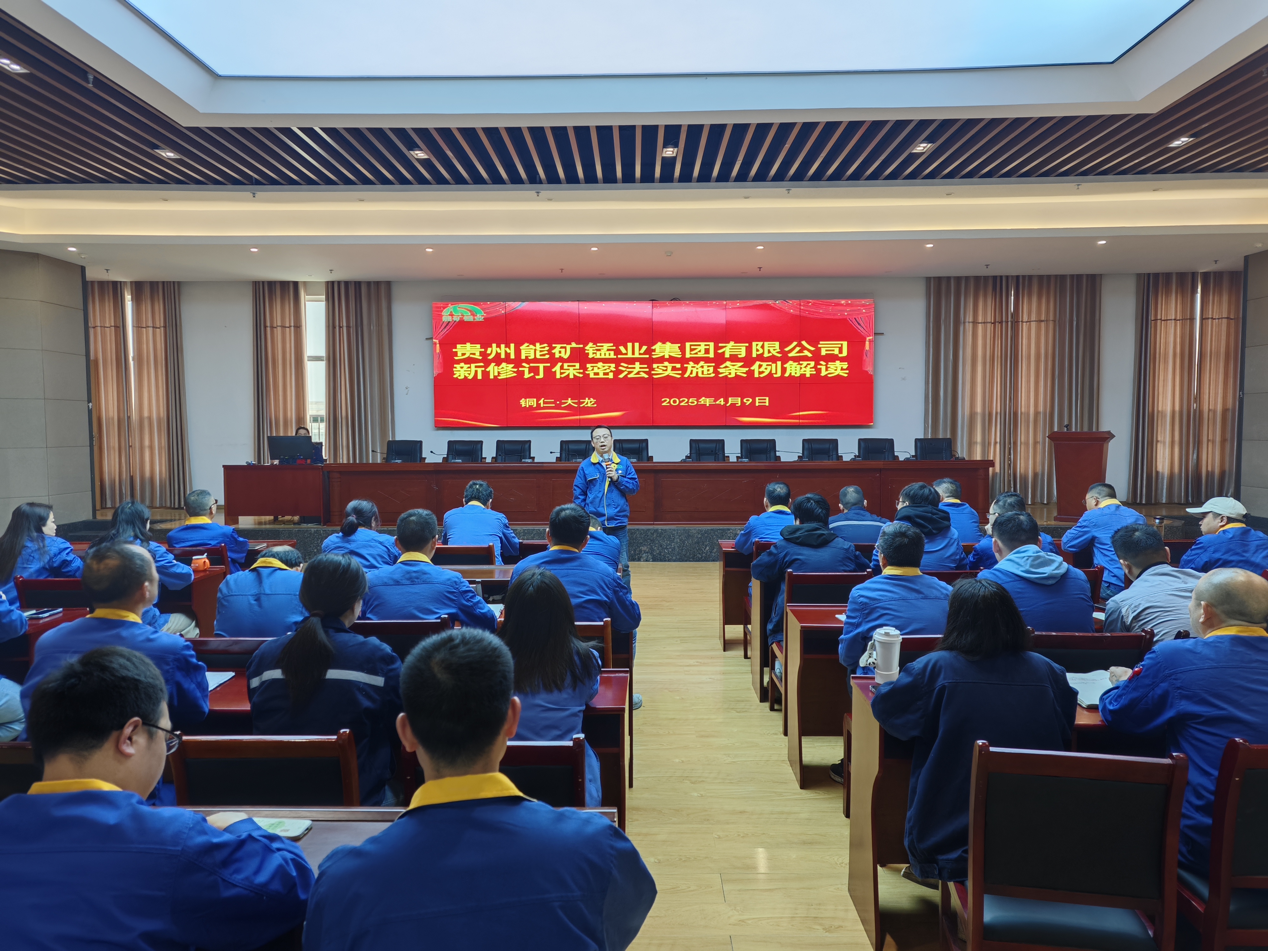 本網訊 4月9日,能礦錳業組織學習新修訂的《中華人民共和國保守國家秘密法實施條例》。公司黨委委員、副總經理周圍主持學習培訓。