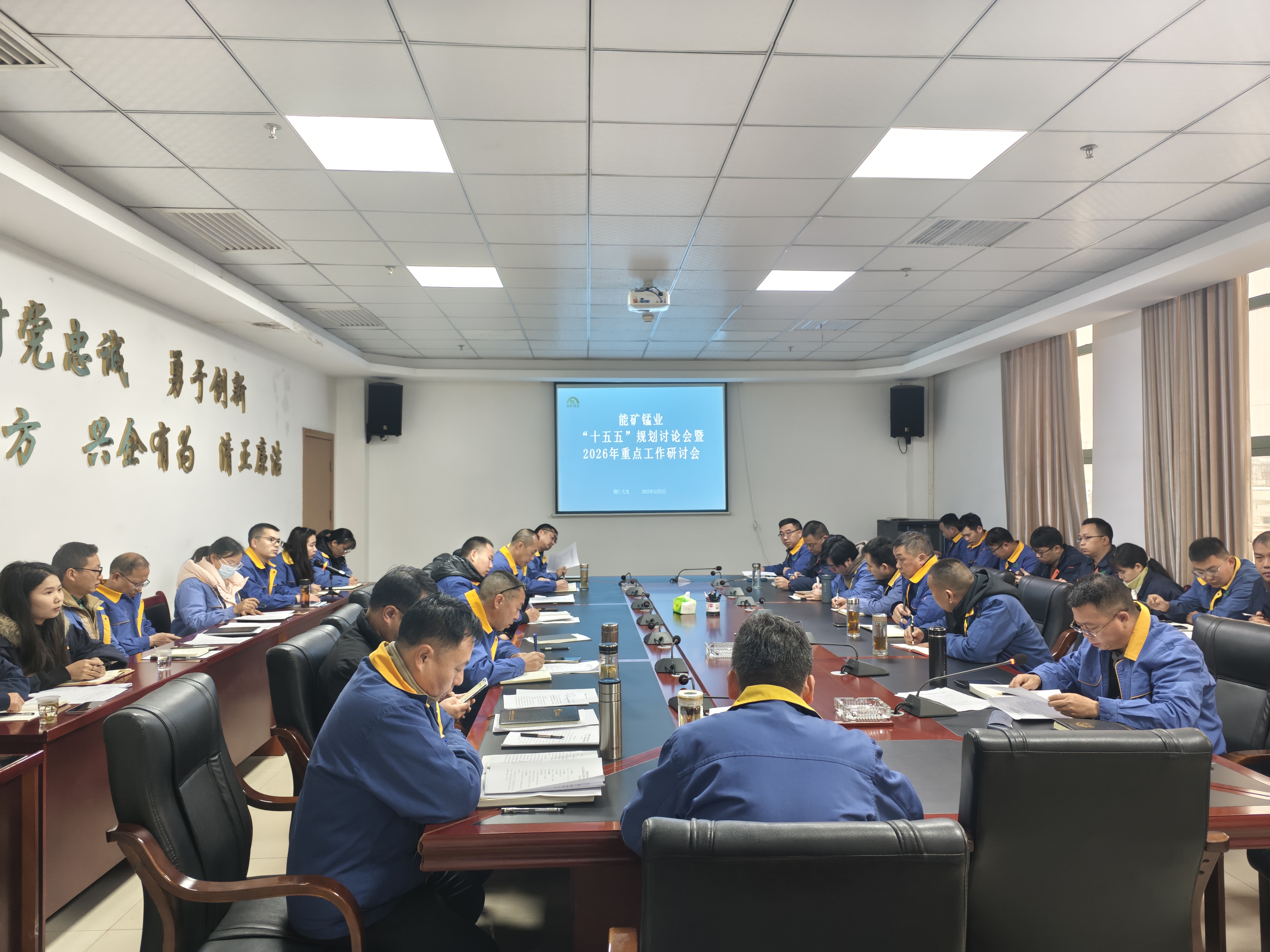 本網訊 為科學編制“十五五”發展規劃,提前布局2026年重點工作,12月5日,能礦錳業組織召開“十五五”規劃討論會暨2026年重點工作研討會。公司黨委書記、董事長、總經理楊曲波出席會議并作工作部署,黨委副書記任金黔主持會議。