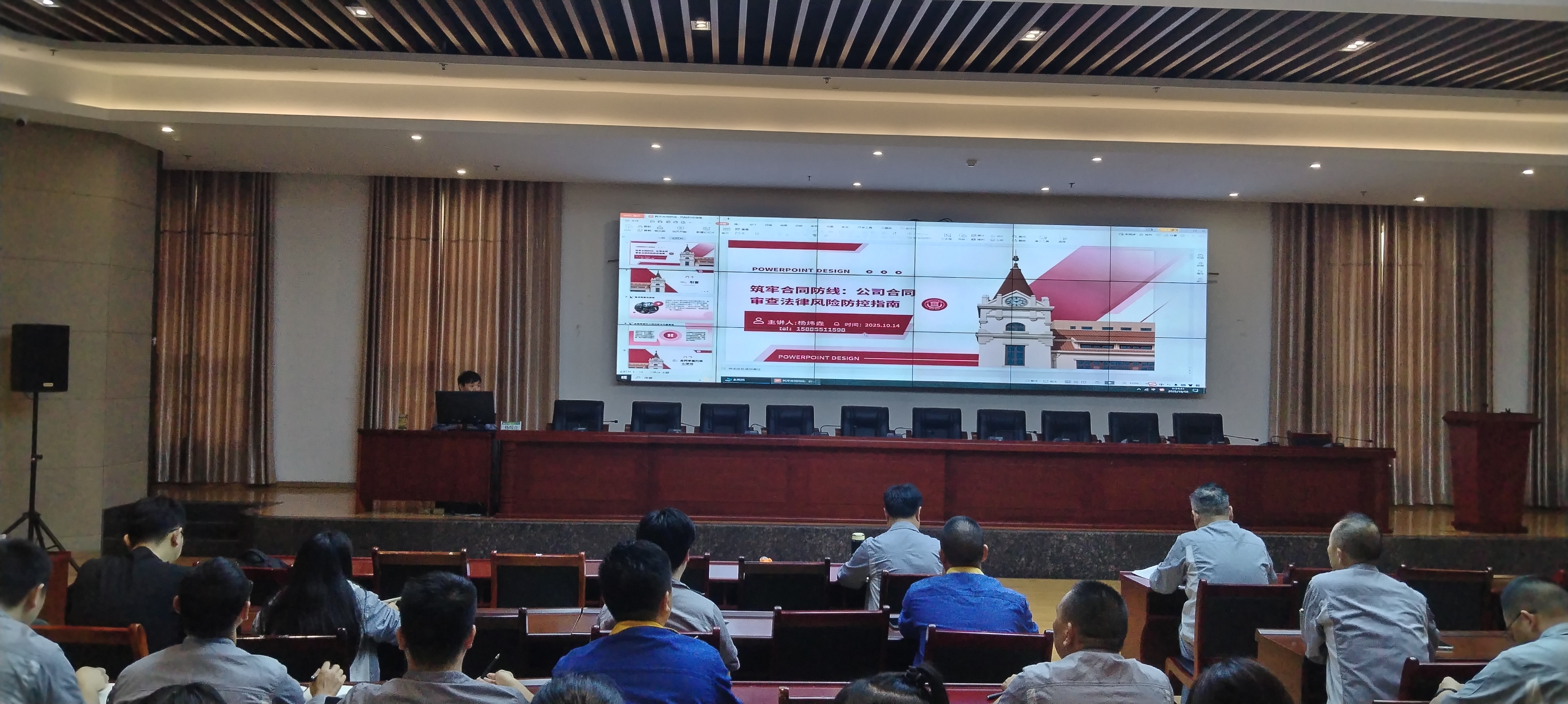 本網訊 為全面提升合同管理規范化水平,有效防范法律風險,10月16日,能礦錳業組織開展合同審查法律風險防控專題培訓。公司特邀貴州聽君律師事務所資深律師楊煒垚專題授課,公司在家黨委班子成員及各部門相關人員50余人參訓。
